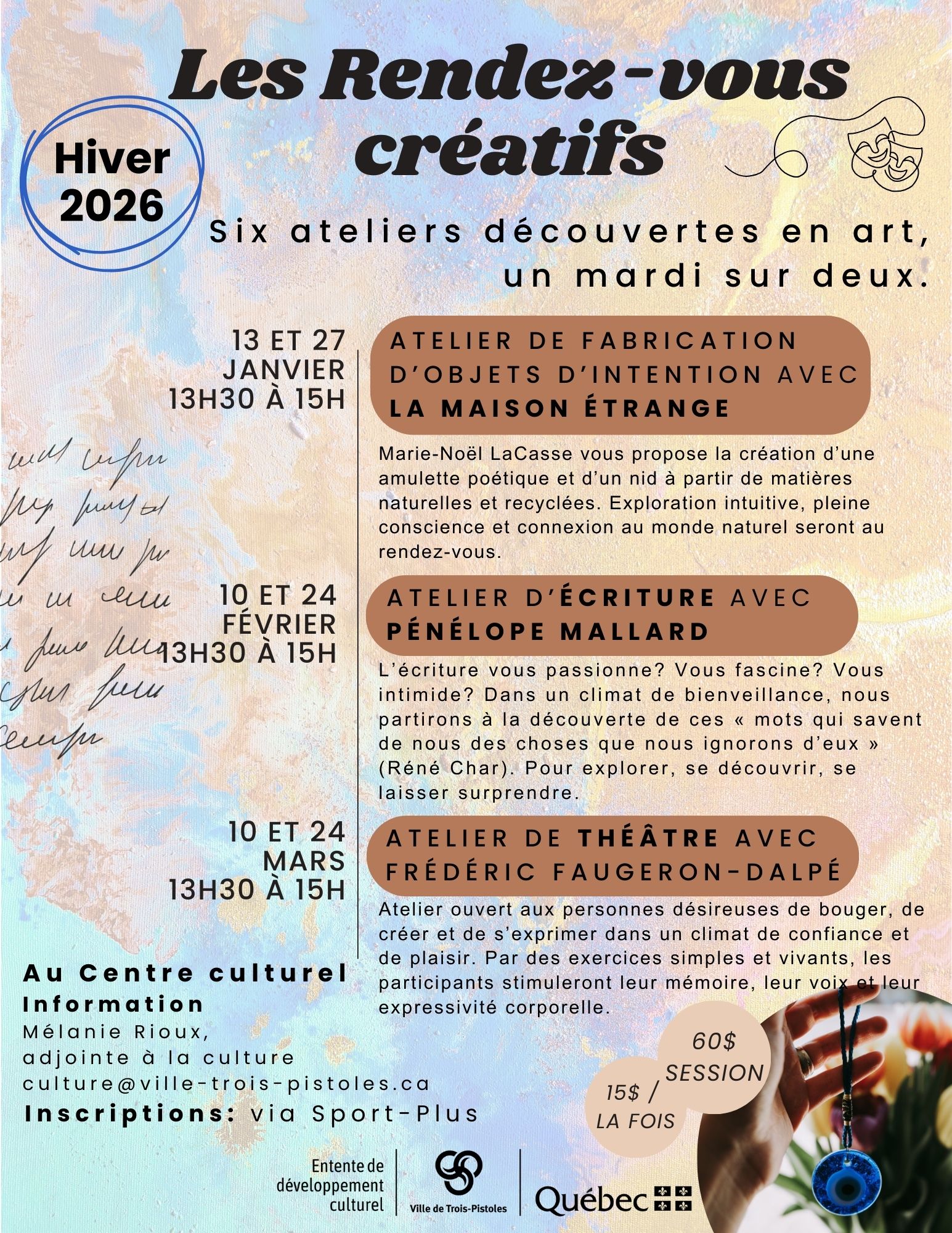 Session de 6 ateliers d'art commençant le 13 janvier, un mardi sur deux !