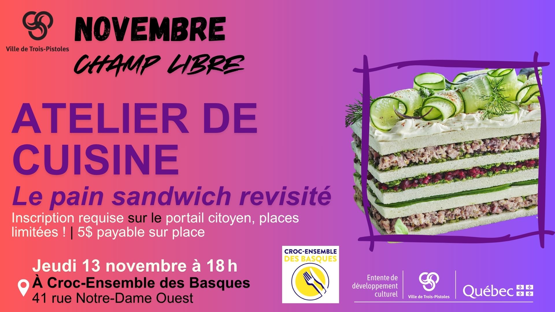 Pour vous inscrire: https://ville-trois-pistoles.ca/formulaire/champ-libre-atelier-de-cuisine/introduction