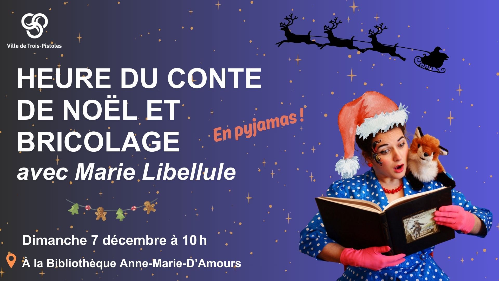 Site Web de l’événement : https://www.ville-trois-pistoles.ca/evenement/heure-du-conte-de-noel-avec-marie-libellule
